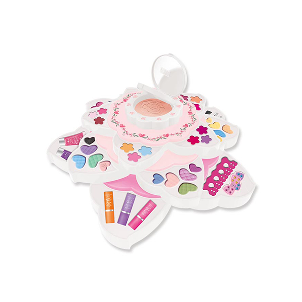 产品: 6色湿眼影,15色眼影,9色唇彩,3瓶水性指甲油,10色腮红, 1色粉饼,2条啫喱, 1个分指器, 1条指甲锉,5支化妆刷,1个粉扑,1张宝石贴纸,5只小口红
