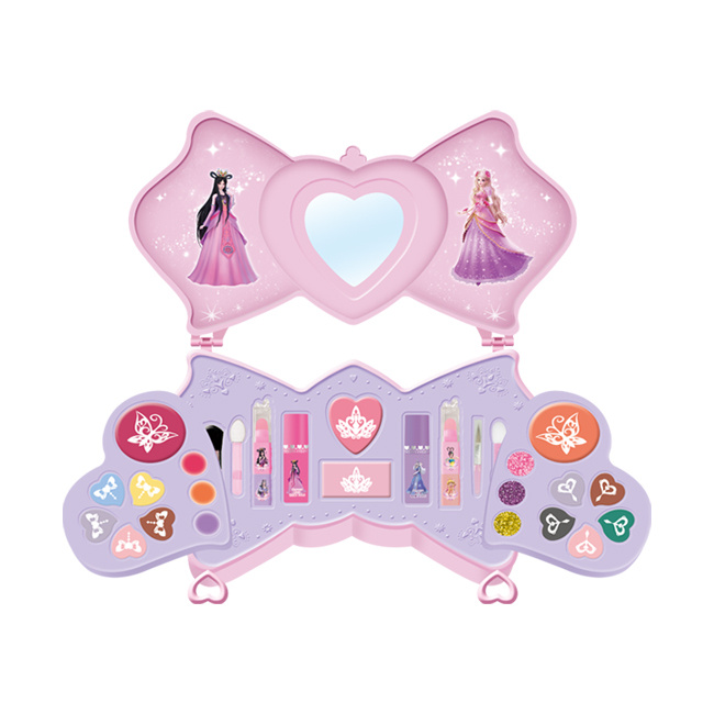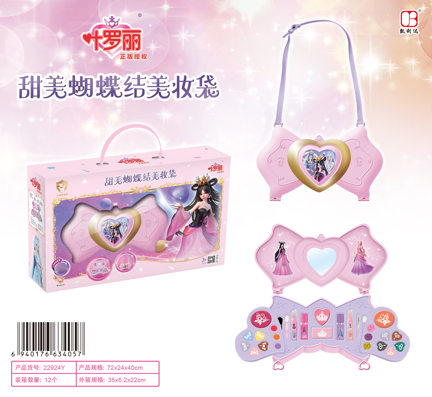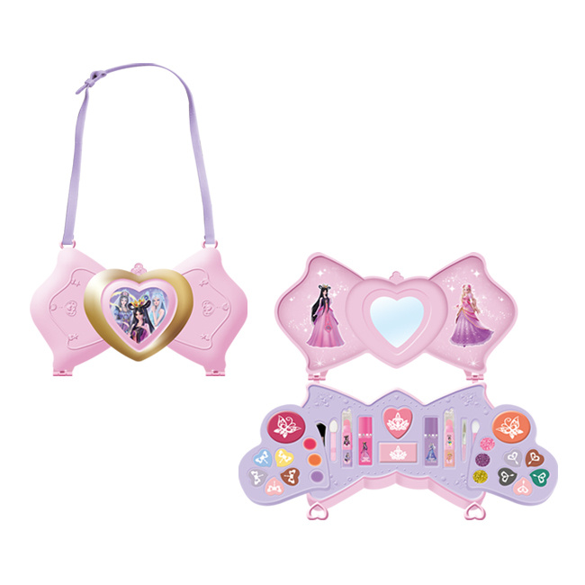 10色眼影膏,3色唇膏,3色闪粉唇彩,4色腮红膏,4条唇膏,2瓶指甲油,4条化妆刷,2张透明贴纸,1条背带